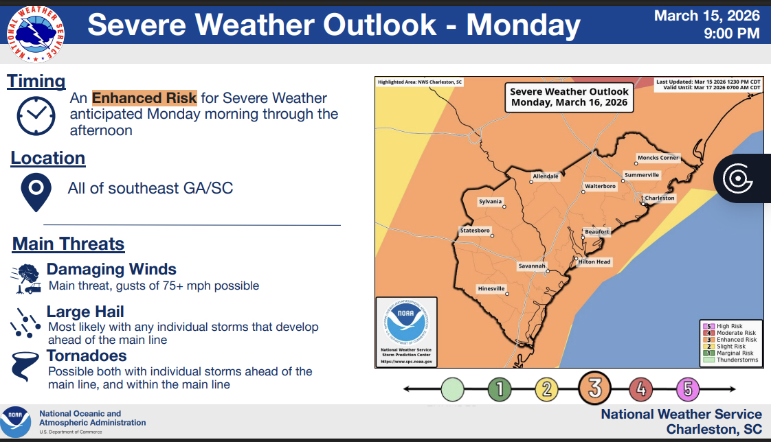 Beaufort County schools shift to eLearning Monday as severe winds expected
