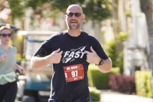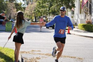 With a time of 14.40, James Quattlebaum comes in first place overall in the 5K race and with a time of 47.59 also first place overall in the 10k race in the 16th annual Beaufort Twilight Run on Saturday, March 28, 2026 in Habersham.