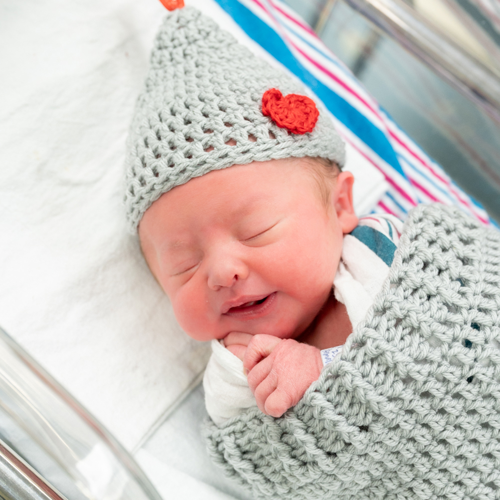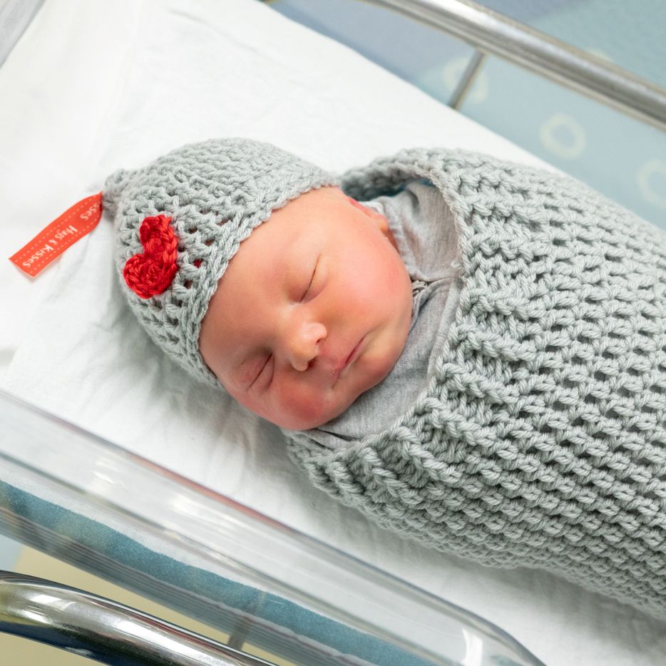 Birthing Center nurse Donna Mixon, LPN crocheted the “Kiss” swaddles and hats.