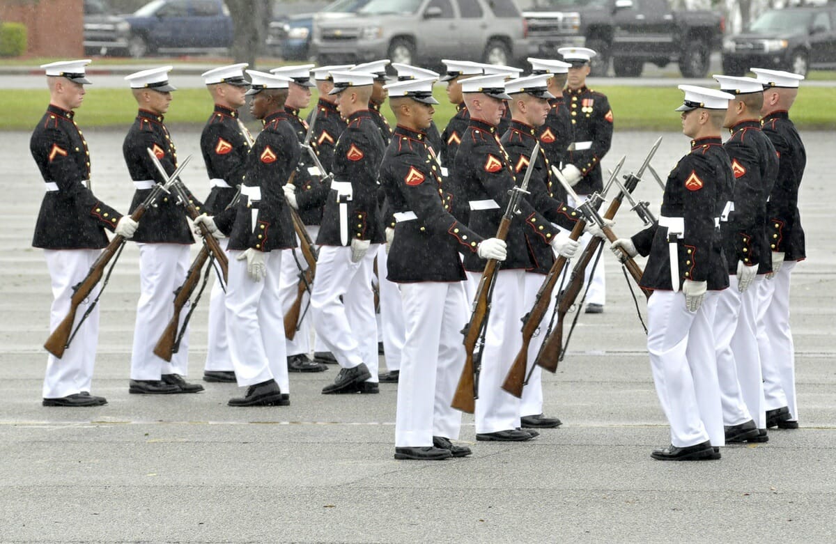 DSC6233 April 8, 2015 DSC6233 Marines with the Silent Drill Platoon use fully operational, hand polished M1 Garand rifles with chromed bayonets in all their drills. Share this Facebook Messenger Twitter Pinterest Whatsapp Email newsbyte Leave a ReplyYour email address will not be published. Δ