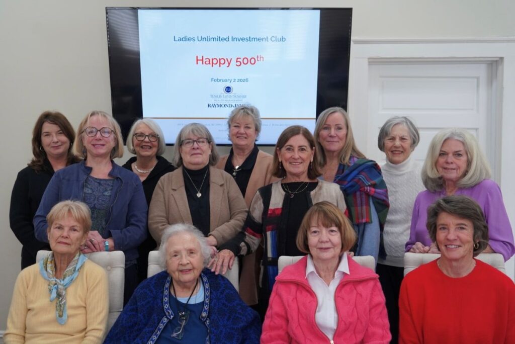 Members of the Ladies Unlimited Investment Club celebrated the club’s 500th meeting earlier this month in the Beaufort offices of Raymond James, their financial advisor.