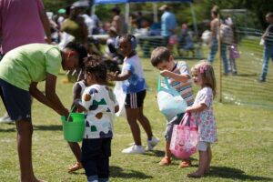 Children collect eggs during Extravaganza 2026 on Saturday, April 4, 2026, at Community Bible Church in Beaufort. Amber Hewitt/The Island News