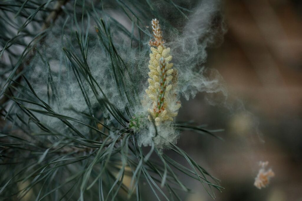 Pollen is a powder produced by plants as a part of their reproductive process, which is why pollen counts spike in spring. Spring is the time for plants to reproduce, and in early spring, trees like oak, birch and maple are the main culprits for the yellow dust coating buildings, cars and, well, everything else.