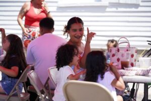 Beaufort’s Alexandria Vega at the table while her children are eating during the Lowcountry Food Truck Festival in Port Royal on Saturday, April 4, 2026. Amber Hewitt/The Island News