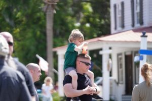 Ian Sutherland, 5, utilizes his dad’s head as a makeshift table to use while he savors his snow cone during the Lowcountry Food Truck Festival in Port Royal on Saturday, April 4, 2026. Amber Hewitt/The Island News