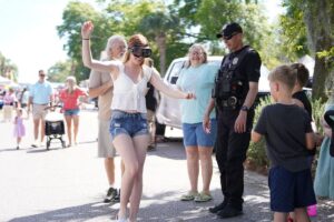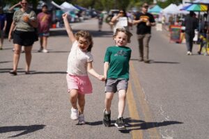Five-year-old friends Shayne Bateman and Ian Sutherland skip down Paris Avenue during the Lowcountry Food Truck Festival in Port Royal on Saturday, April 4, 2026. Amber Hewitt/The Island News