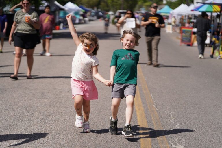 Five-year-old friends Shayne Bateman and Ian Sutherland skip down Paris Avenue during the Lowcountry Food…