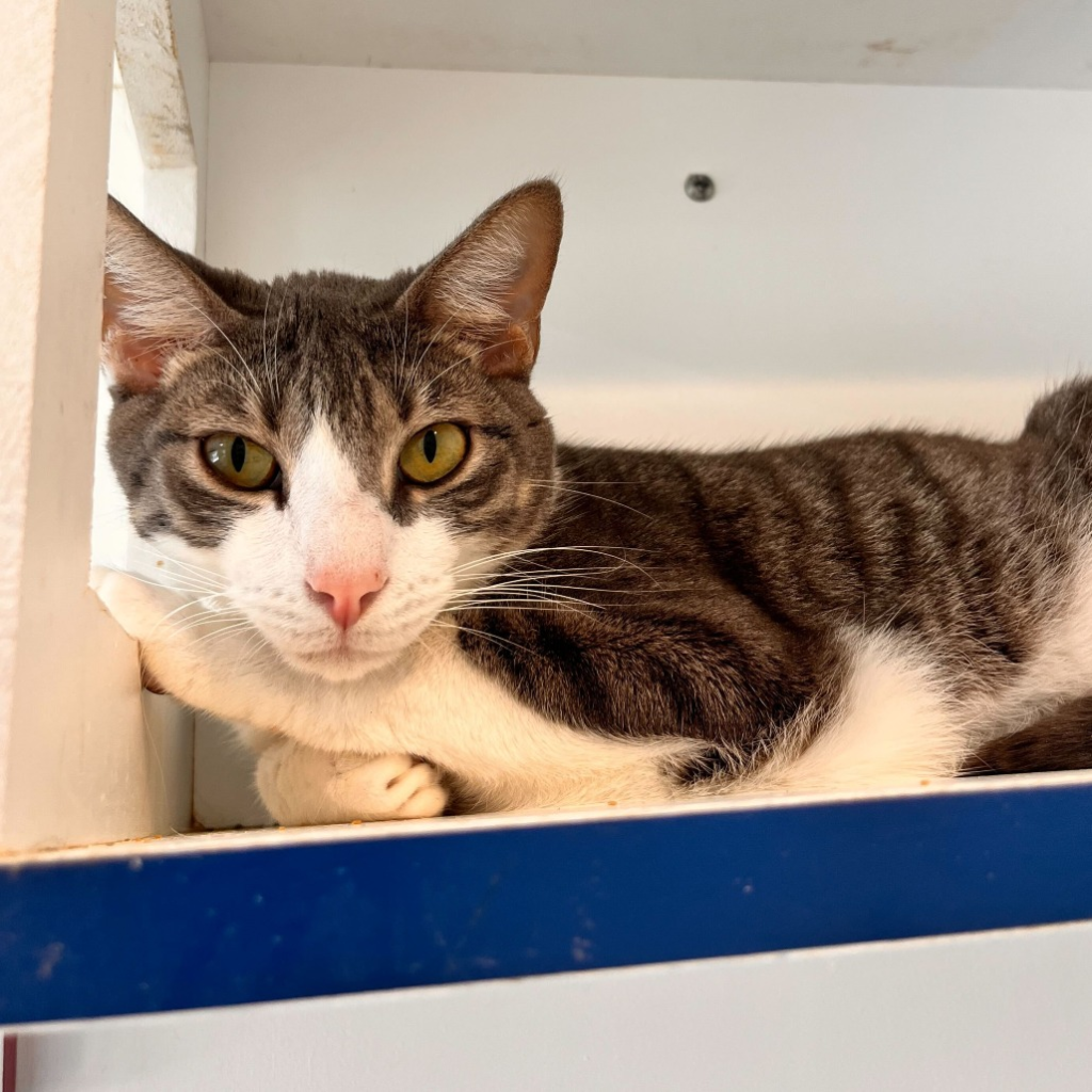 Bonkers is a gentle, reserved tabby boy with a striking white mask and legs and the kind of big, soulful eyes that quietly ask for kindness. He’s an adult cat who carries himself with a soft, thoughtful presence—never demanding, always observing, and slowly letting you see the sweetness beneath his shy exterior. He’s looking for a home where he can settle in at his own pace, feel safe, and know he’s truly treasured. For more info, call PAL at 843-645-1725 or email Info@PalmettoAnimalLeague.org.
