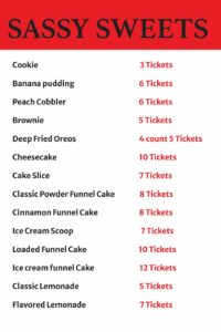 Admission is free. All food is exchanged for tickets, which are available for $1 each.